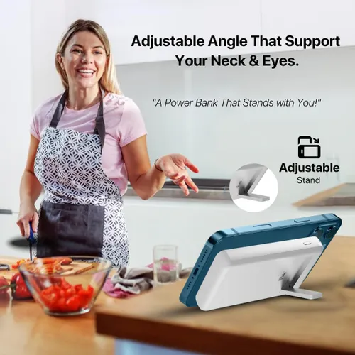 The built-in adjustable stand provides a convenient viewing angle, making it perfect for watching videos, video calls, or using your device hands-free while it charges.