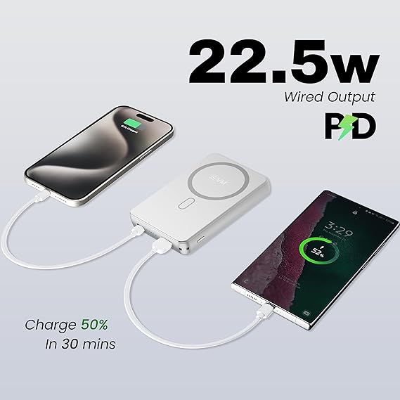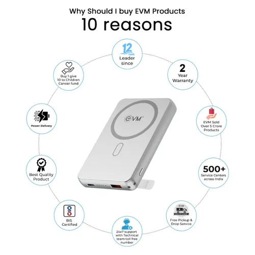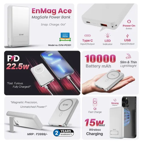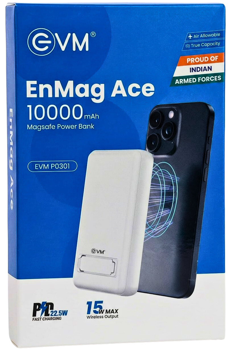 Shop with Ease – Pay LaterThe EVM EnMag Ace P0301 is a premium 10000mAh power bank designed for fast, convenient, and versatile charging. Combining 15W wireless charging, 22.5W wired fast charging, and a sleek magnetic design, it provides maximum flexibility for powering smartphones and accessories on the go.