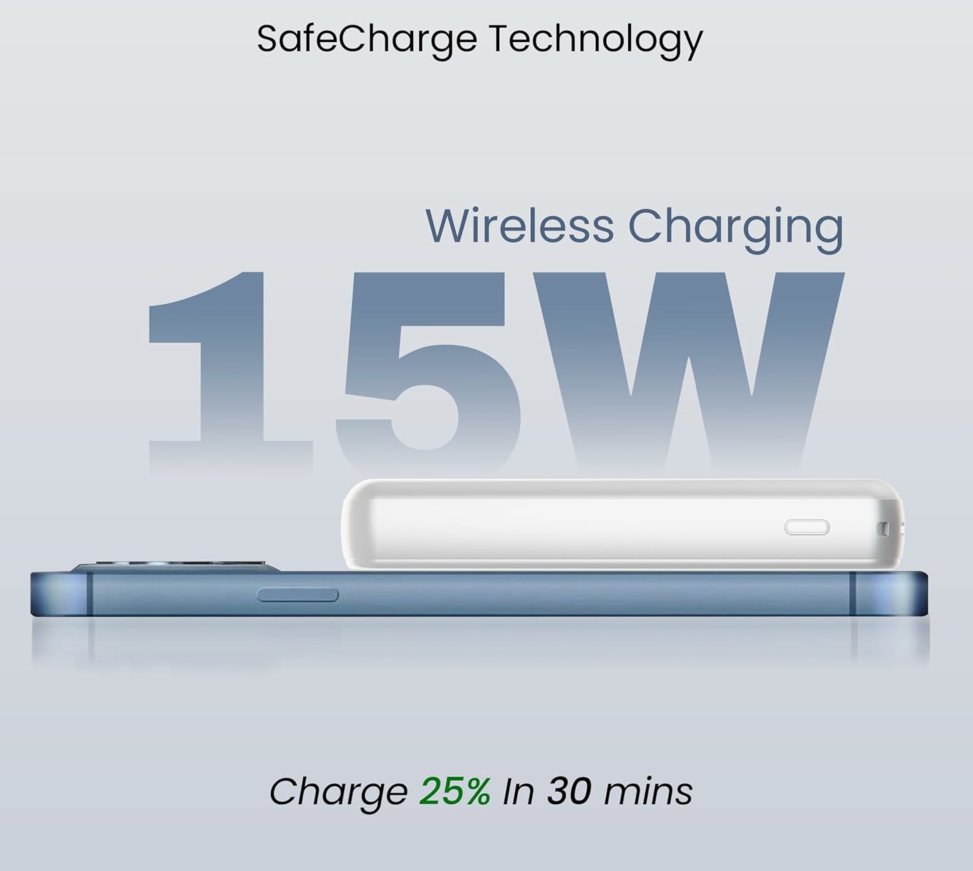 Featuring both Type-C and USB output ports, the power bank delivers up to 22.5W fast charging. Charge two devices simultaneously and get your gadgets powered up quickly and efficiently.